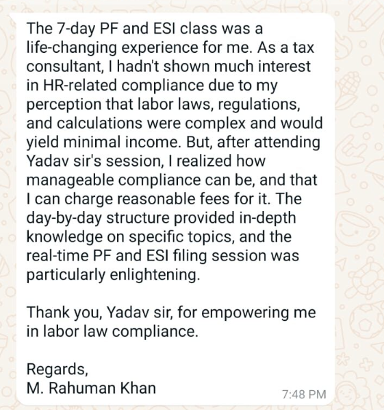 Now, through the PF & ESI 7 Days Challenge, Yadav is on a mission to help professionals master compliance, wage calculations, and return filing—equipping them with skills that matter for career growth.